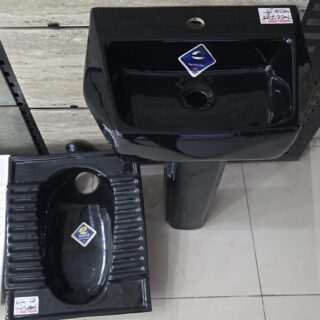 Black Ceramic Wash Basin & Black Ceramic Eastern Commode Set